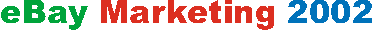 Ebay Marketing 2002 teaches you effective SELLING STRATEGIES and you don't need any specialized computer knowledge.  I'm going to pass on the SECRET SELLING TECHNIQUES that I use each and every day to bring in hundreds of thousands of dollars selling my products on internet auctions.